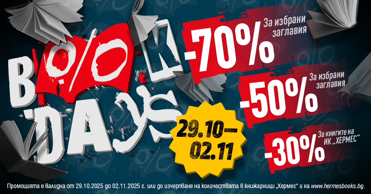 Книгите, включени в промоцията, може да видите в електронна книжарница „Хермес“ (www.hermesbooks.bg). Намалението ще бъде активно от 29 октомври до 02 ноември 2025 г.
