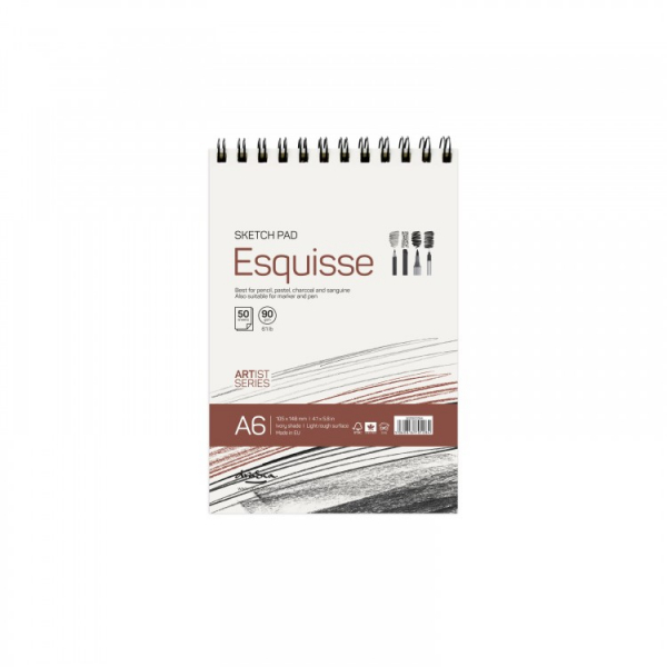 Той е шит и може да се отвори напълно, за да седи хоризонтално. Има 96 листа за много рисунки - 16 листа крафт хартия и 80 листа хартия за скици с леко кремав цвят, обработена без киселина. Те са подходящи за рисуване с графит, въглен, креда, туш, тънкописци, маркери, моливи и пастели.
